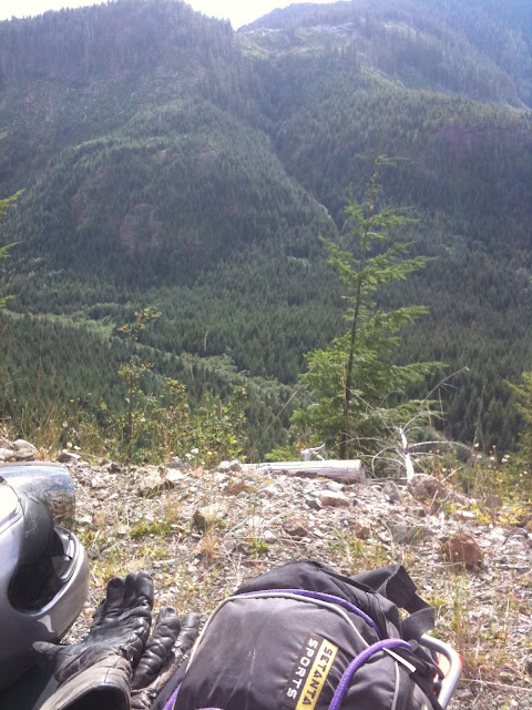 You know what we did don't you? Yep, we followed it. And, well, yep, it was Hell. Washouts, bizarre bike snapping holes in the road, more washouts, land slides and finally it petered out into an alder choked goat path.